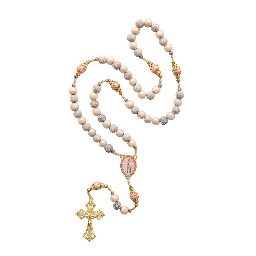 A peça é acompanhada de um porta terço de algodão cru exclusivo da 2TERÇOS