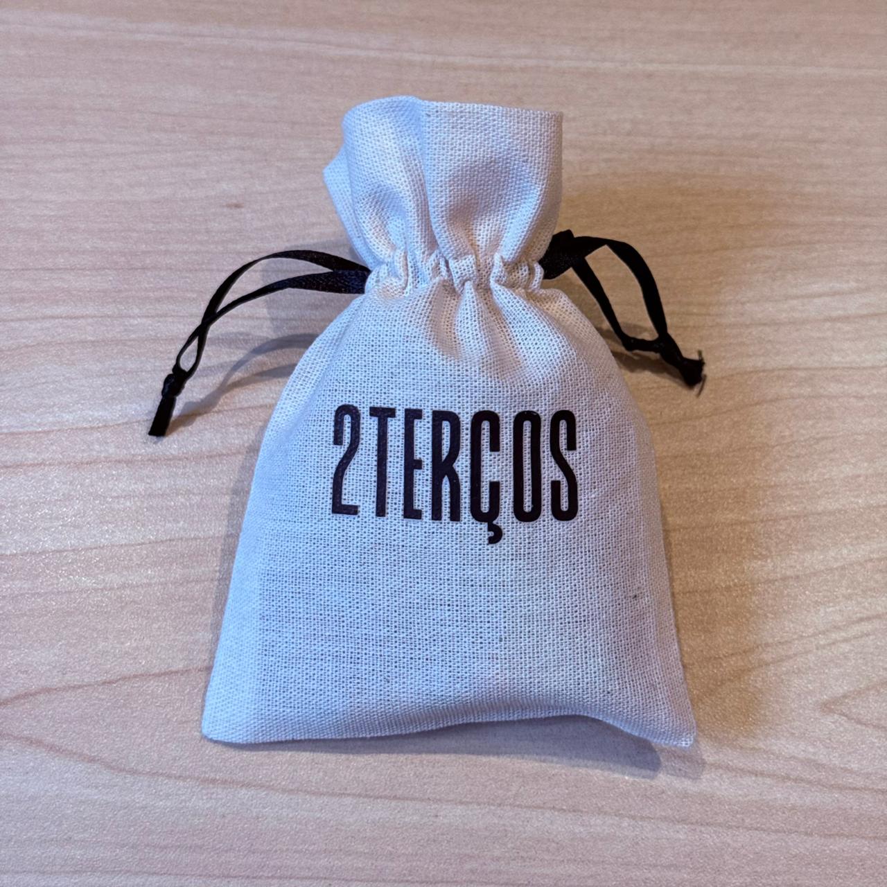 A peça é acompanhada de um porta terço de algodão cru exclusivo da 2TERÇOS